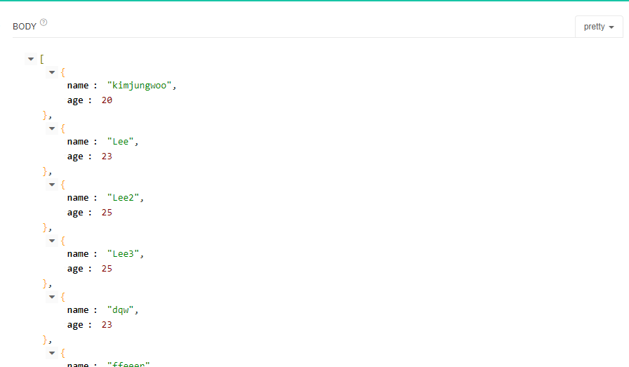 BODY부분에 Json형식으로 Student객체의 정보를 입력하였다.