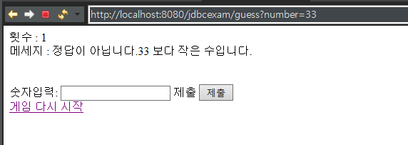 message = "정답이 아닙니다."+ number+" 보다 작은 수입니다.";