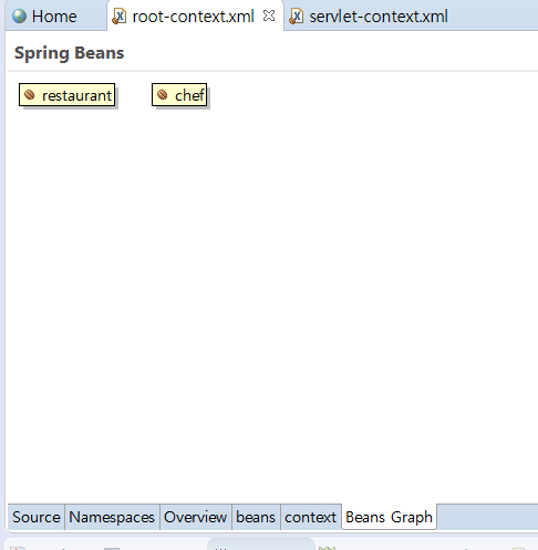 Beans Graph항목을 누르면 빈으로 등록된 클래스들을 볼 수 있다.