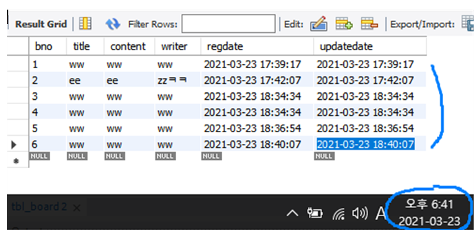 정확한 한국 시간이 입력된 것을 볼 수 있다.