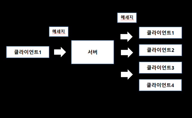 소켓 통신으로 받은 메시지를 가져와서 연결된 모든 사용자들한테 전송함