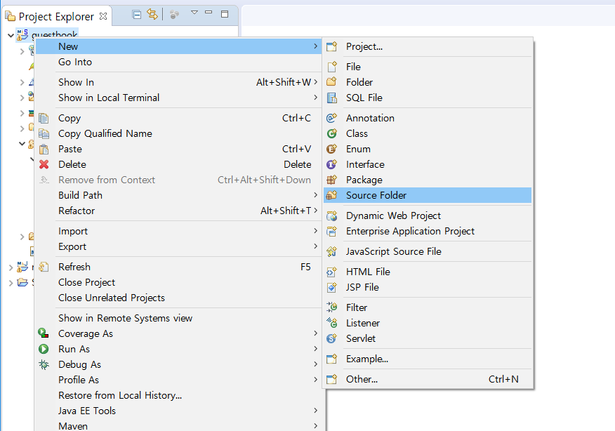 1. 해당 프로젝트 마우스 우클릭 -> properties -> Java Build Path